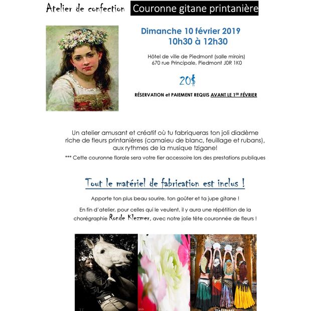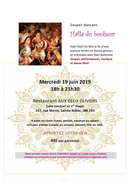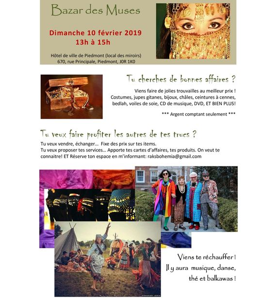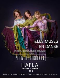 Dimanche 22 juillet à 13h: L'Égypte en fête, Pointe-à-Callière (Montréal) Dimanche 16 septembre à 19h: Hafla Danses tziganes avec Pétia Iourchenko, Studio Caravane (Montréal)